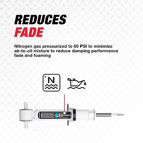 - SMOOTH PERFORMANCE — Polyurethane rebound bumper and rubber bushings help absorb ride harshness while the fluon-banded piston enhances responsiveness to changing road conditions for an overall smoother ride